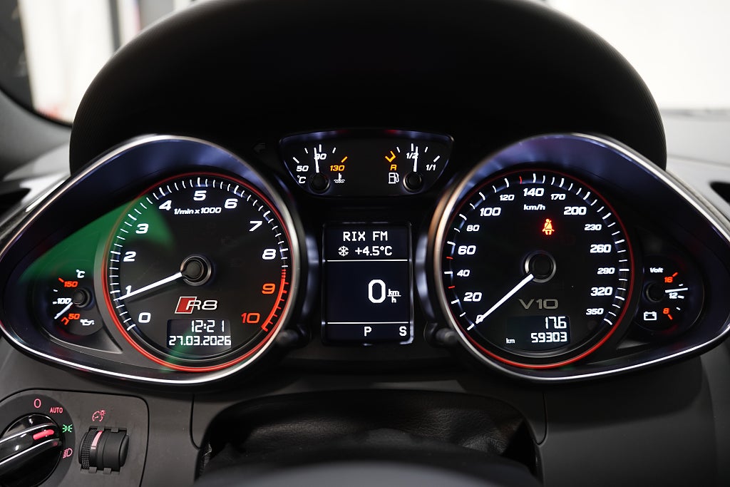 Fabriks utrustning: Keramiska bromsar, Skalstolar i nappaläder, Fullt kolfiber paket (Carbon Sigma), Audi MMI Navigation Plus (GPS), Backkamera, LED strålkastare, LED bakljus.