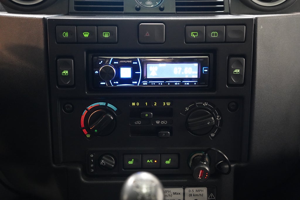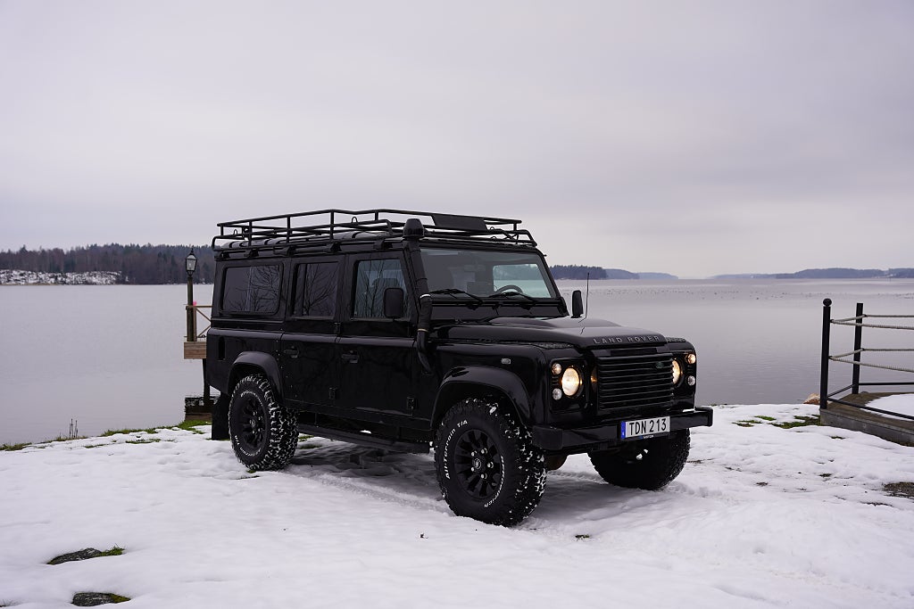 Defender 110 TD4 i bra skick och med bra historik. Modellen med bra utrustning från fabrik såsom Radio, Halvläder stolar, Taklucka och uppgraderad stereo. Samt modernare TD4 motorn med 6-växlad låda och AC. Mycket är bytt under åren och bilen är helt NY-BESIKTIGAD. Bara dra ut på nästa äventyr med denna feta offroader som går utmärkt att använda som Camper eller Jaktbil.